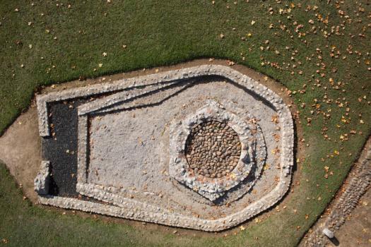 Sanctuaire gallo-romain de La Hillière, vue aérienne du bassin octogonal