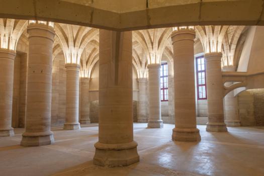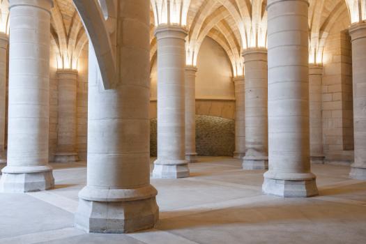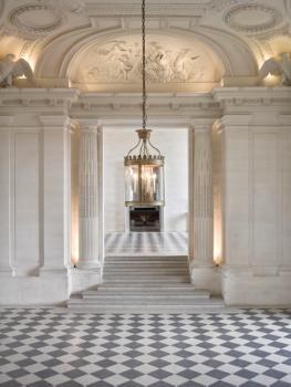 Château de Maisons, vue vers la salle à manger des officiers ou salle des buffets depuis le vestibule d'honneur