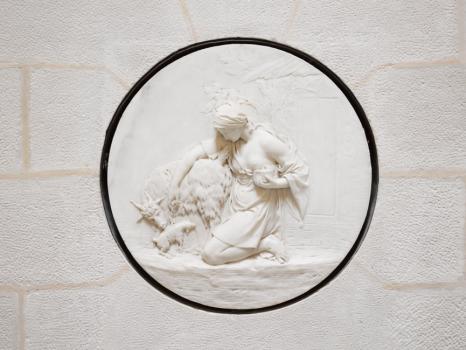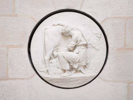 Laiterie de la Reine, rotonde d'entrée, médaillon mural