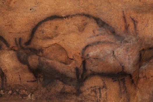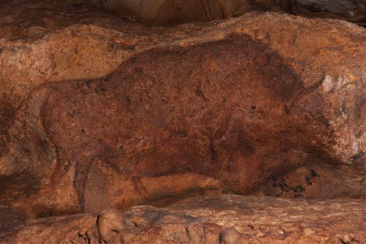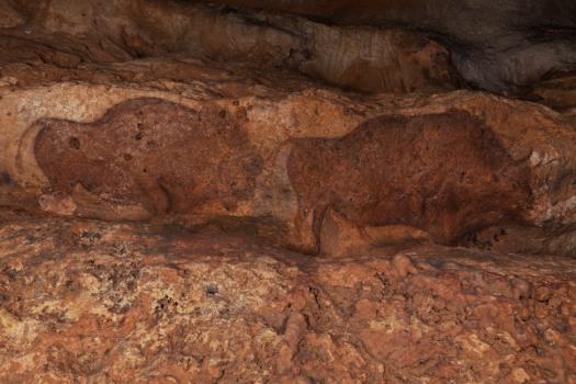 Abri du Cap-Blanc, tête d'un cheval (n° 2) avec tête de bison scultpée par dessus