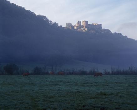 Château de Castelnau-Bretenoux, ensemble nord-est vu depuis la route de Félines