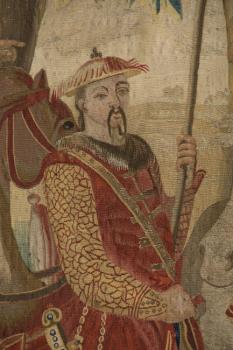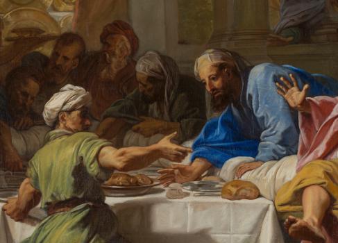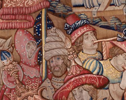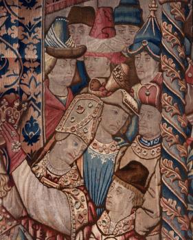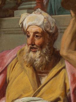 Le Christ en croix accompagné de donateurs, détail de la scène centrale