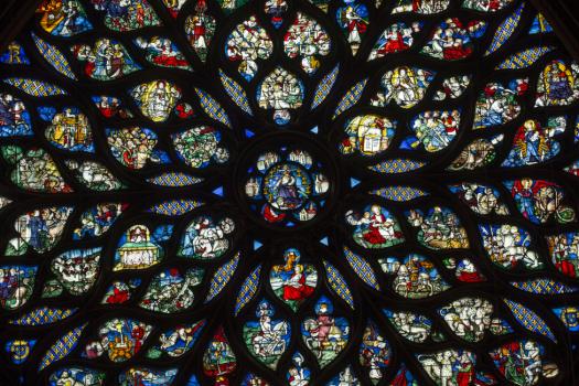 Sainte-Chapelle de Paris, chapelle haute, rose ouest (détail des fuseaux centraux)