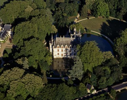 Vue aérienne du château d'Azay-le-Rideau, façade sud