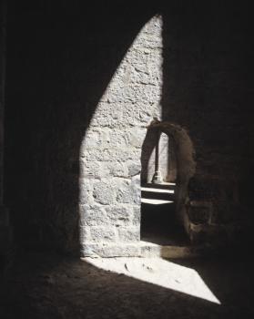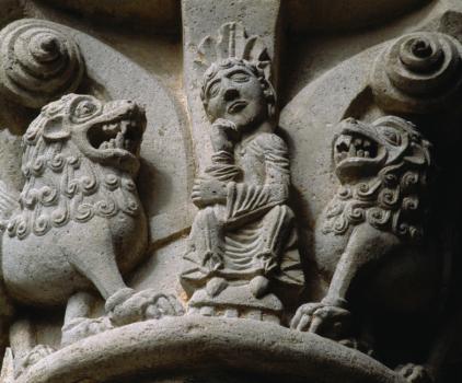 Abbaye de La Sauve-Majeure, entrée de la première absidiole sud (ancienne chapelle Saint-Nicolas), méditation de Daniel