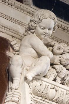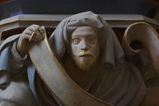 Console de niche en forme de prophète déroulant un phylactère (détail)