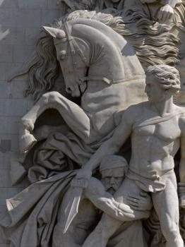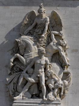 L'Arc de triomphe de l'Étoile, côté est, depuis l'avenue des Champs-Élysées