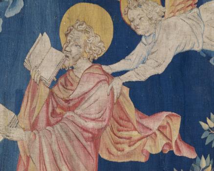 Saint Jean mange le livre, détail de saint Jean poussé par l'ange