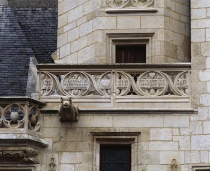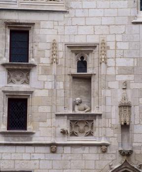 Palais Jacques-Coeur, bordure de rive et figurine décorant le pignon de l'aile sud