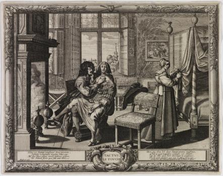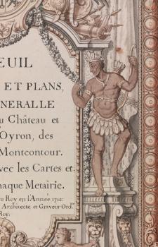 Château de Maisons, escalier, groupe de putti illustrant l'amour, détail