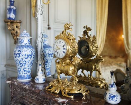 Château de Champs-sur-Marne, chambre bleue : pendule et vases chinois