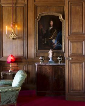 Château de Champs-sur-Marne, costume féminin du XVIIIe siècle dans le salon chinois