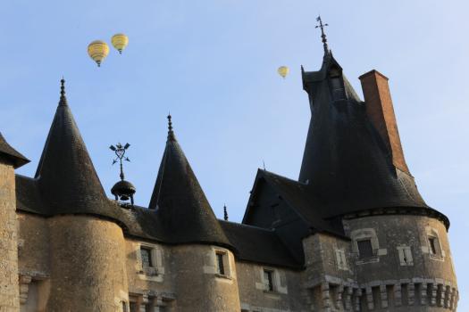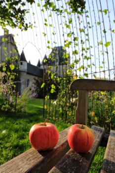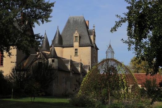 Château de Fougères-sur-Bièvre, ensemble nord-est vu du banc de la volière du jardin