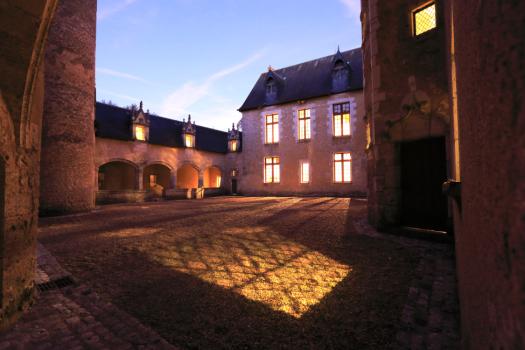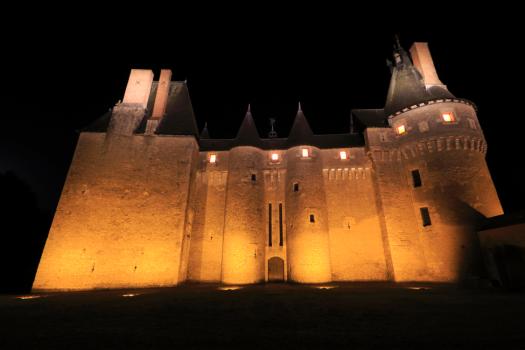 Château de Fougères-sur-Bièvre, façade nord-ouest illuminée