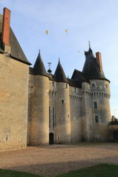 Château de Fougères-sur-Bièvre, cour d'honneur, façade féodale et la galerie