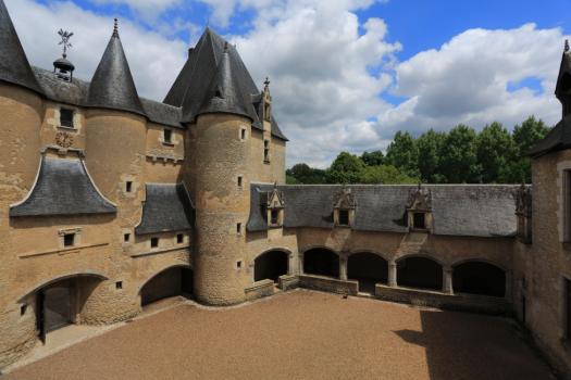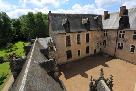 Château de Fougères-sur-Bièvre, cour d'honneur, angle ouest depuis la galerie