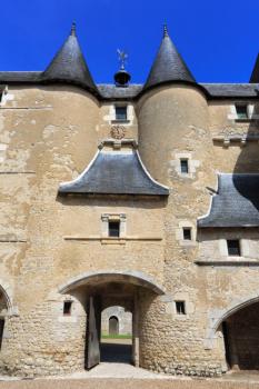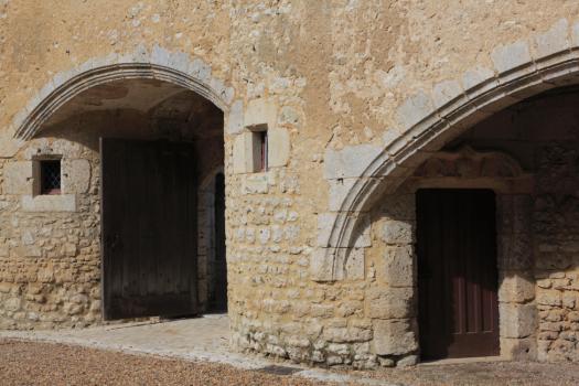 Château de Fougères-sur-Bièvre, cour d'honneur, arc surbaissé de la façade féodale