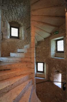 Château de Fougères-sur-Bièvre, escalier de la tour hexagonale