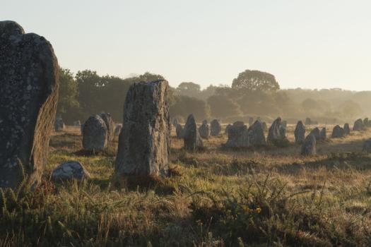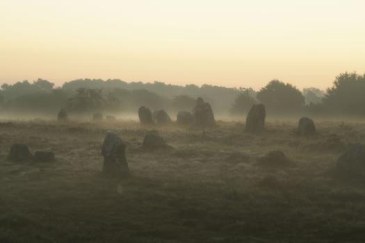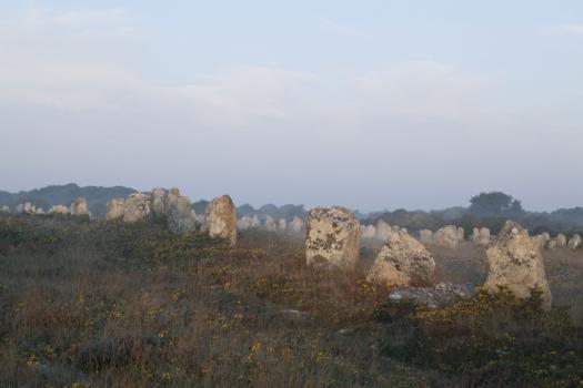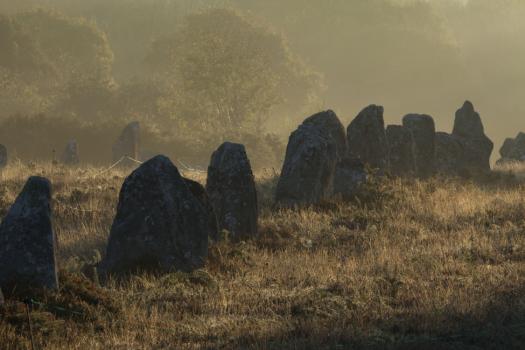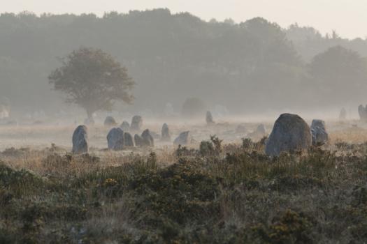 Alignements de Kerlescan, menhirs dans la brume matinale