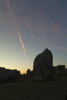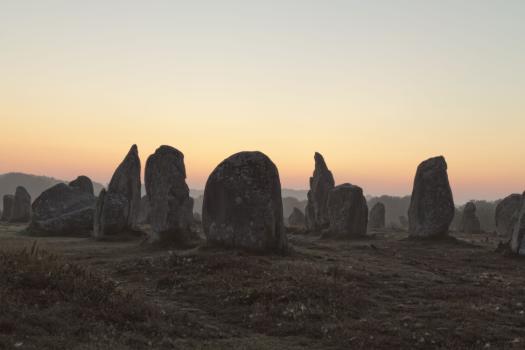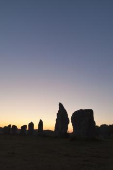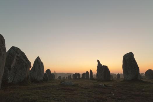 Alignements de Kermario, quelques menhirs se détachant sur le ciel au petit matin