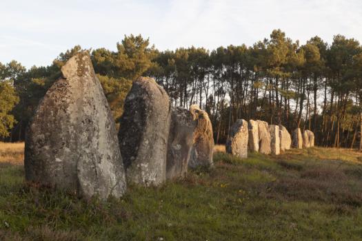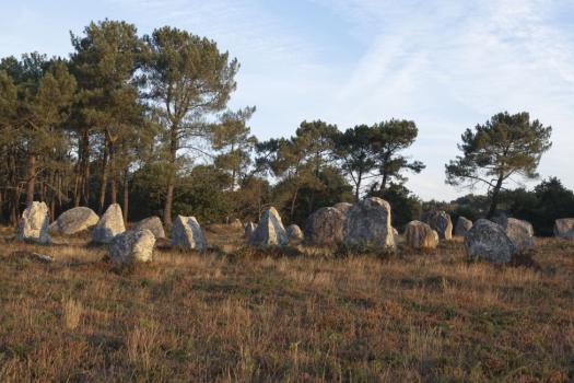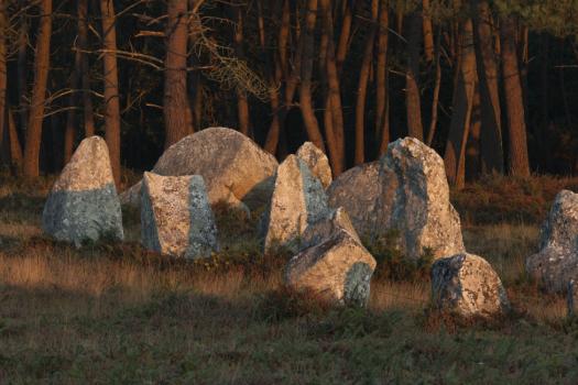 Alignements de Kerlescan, groupe de menhirs devant des pins