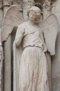Cathédrale Notre-Dame de Reims, façade occidentale, portail nord, ébrasement nord (détail : "l'Ange au sourire")