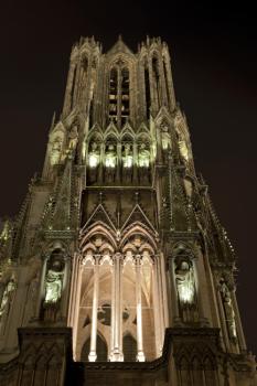 Cathédrale Notre-Dame de Reims, façade occidentale, tour nord vue de nuit