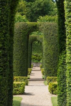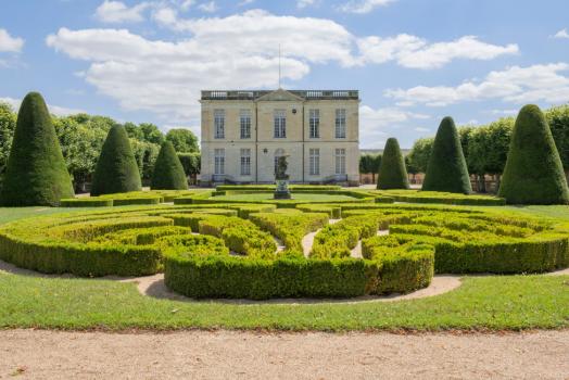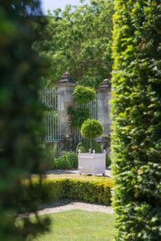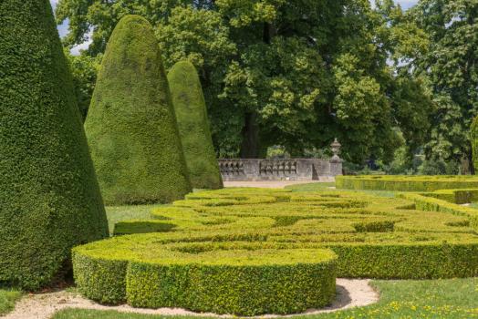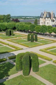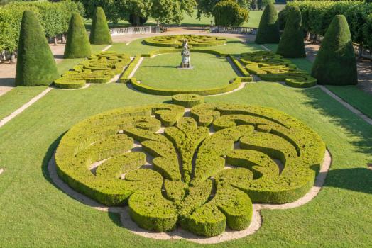 Château de Bouges, broderies de buis et ifs taillés du parterre nord