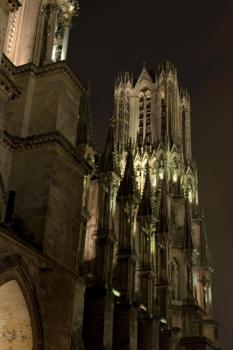 Cathédrale Notre-Dame de Reims, nef, flanc nord vu de nuit
