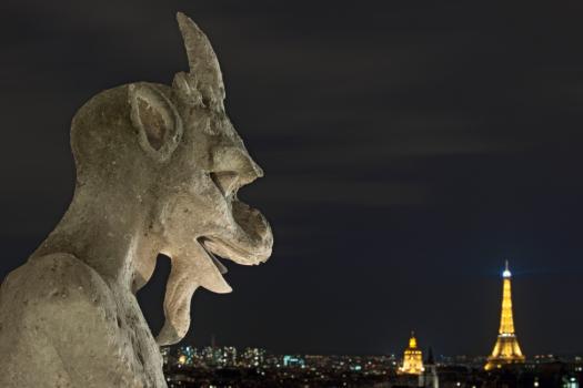 Vue de Paris depuis la galerie des chimères de la cathédrale Notre-Dame de Paris, la tour Eiffel en arrière-plan