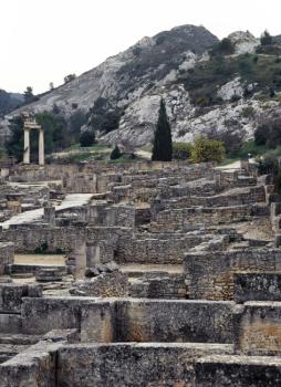 Site archéologique de Glanum, vue en direction du centre monumental depuis le quartier résidentiel