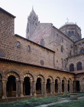 Cathédrale Notre-Dame du Puy-en-Velay, galerie est du cloître, clocher, bras nord du transept et sa croisée