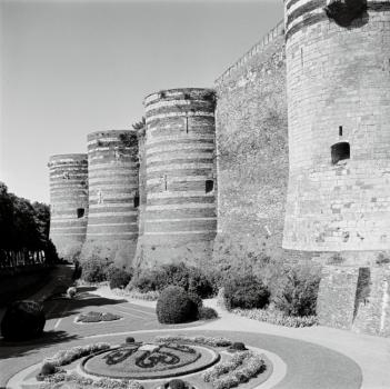 Château d'Angers, jardin, tour du Moulin et pignon de la chapelle