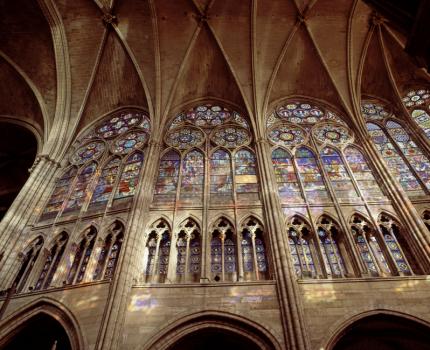 Basilique de Saint-Denis, triforium et fenêtres hautes du ch?ur, côté nord.