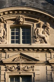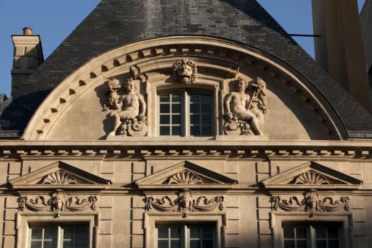Hôtel de Béthune-Sully, partie haute d'un des deux pavillons de la façade sur rue.