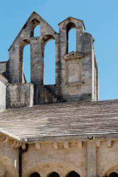 Abbaye de Montmajour, clocher-mur vu depuis la cour du cloître