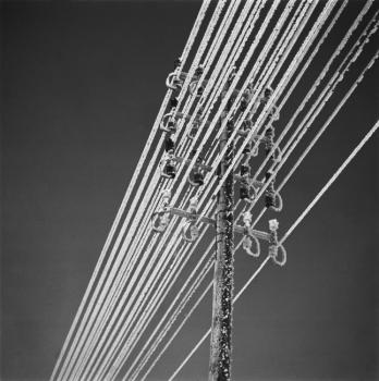 L'Alpe-d'Huez, givre sur des fils téléphoniques