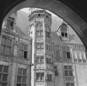 Palais Jacques-Coeur, façade sur cour du corps de logis vue depuis une arcade de la galerie