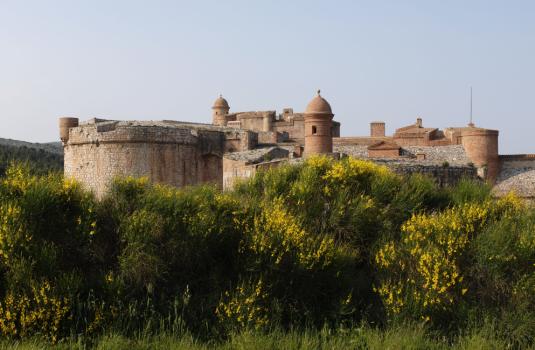 Fort de Salses, contre-garde nord-ouest, bastillon nord-ouest, donjon et bastillon sud-ouest, vus nord-ouest