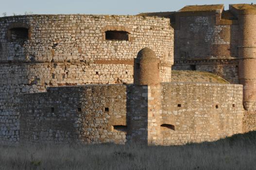 Fort de Salses, contre-garde nord-ouest, bastillon nord-ouest et donjon, vus nord-ouest