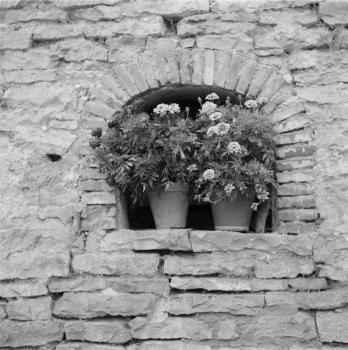 Deux pots de fleurs sur le rebord d'une fenêtre