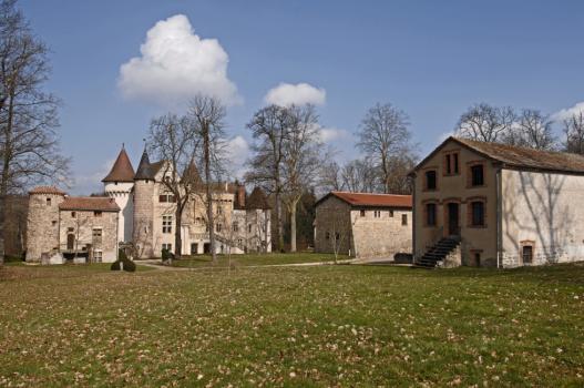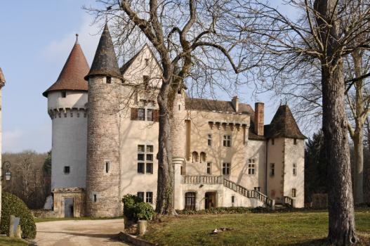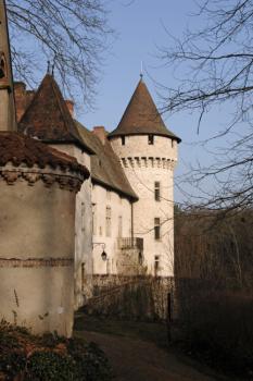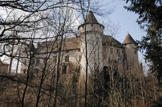 Château d'Aulteribe, façades est et nord vues derrière les arbres du ravin