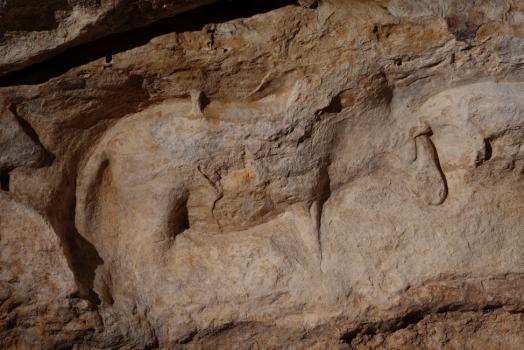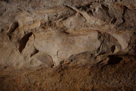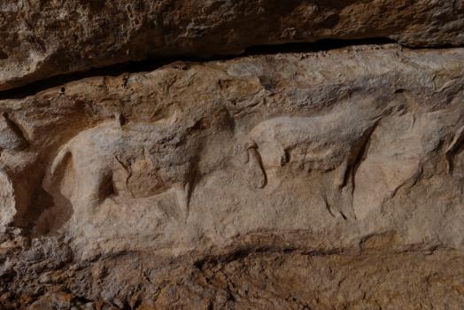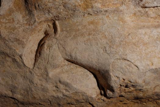 Abri du Cap-Blanc, tête d'un cheval (n° 2) avec tête de bison scultpée par dessus