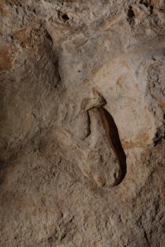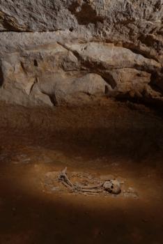 Abri du Cap-Blanc, évocation de la sépulture découverte au Cap-Blanc pendant les fouilles.