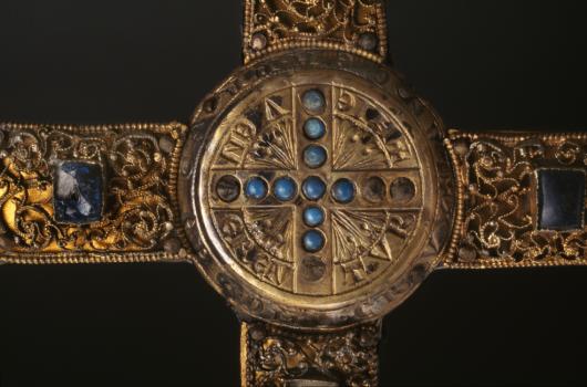 Sainte-Chapelle de Paris, poinçon à décor anthropomorphe, socle de la statue de l'archange sur le toit du chevet