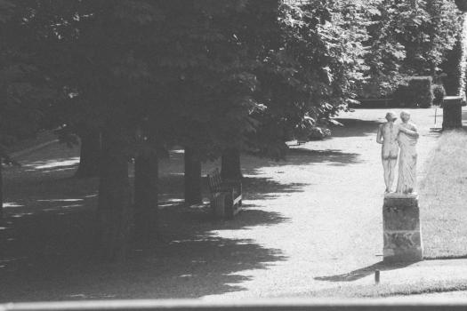 Jardin des Tuileries, statue de profil, fragment, effet de pénombre