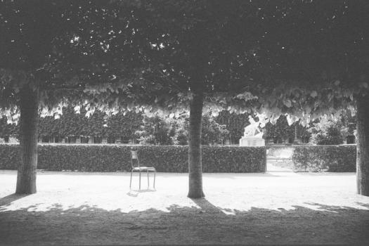 Jardin du Palais-Royal, allée de tilleuls, chaise et groupe sculpté