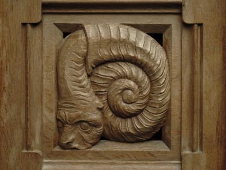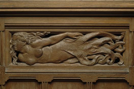 Château de Pierrefonds, détail des lambris, personnage fantastique
