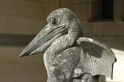 Château de Fougères-sur-Bièvre, sculpture au sommet d'un fronton de lucarne