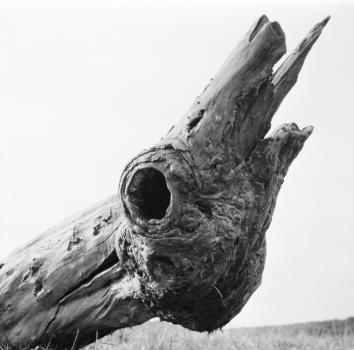 Tronc rongé en forme de tête de saurien